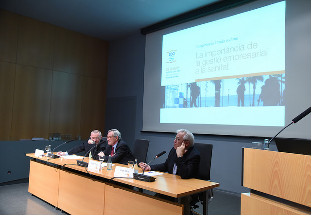 Trias ha repassat la historia de la gestió i planificació sanitària de Barcelona durant la taula rodona organitzada per Parc Salut Mar en ocasió de la celebració del centenari de l’equipament, on també ha participat l’ex alcalde Joan Clos. Ha moderat elbpresident de Parc Salut Mar, Josep Maria Via.
