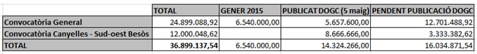 Del total de 36.899.137,54€ d’ajuts disponibles aquest 2015, l’Ajuntament de Barcelona aporta el 71% dels recursos -26.095.636€ -mentre que la Generalitat n’aporta el 29% – 10.803.500€.