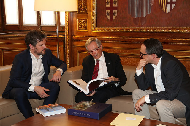 L’alcalde en funcions, Xavier Trias, s’ha reunit aquest matí amb Dagur B. Eggertsson, alcalde de Reykjavík, que es troba de viatge a la capital catalana convidat per l’Institut de Cultura de Barcelona i el Festival Primavera Sound, per participar al 1er Congrés de Sales de Música, conjuntament amb representants de Londres, Austin (EUA) i Groningen (NL). A la reunió hi han assistit, acompanyant Trias, Jaume Ciurana, tinent d’alcalde en funcions; i Joaquim Llimona, comissionat en funcions de Relacions Internacionals i Cooperació.