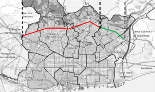 El Govern Municipal ha escollit el tram de la Ronda en sentit Trinitat, situat entre la pl. Karl Marx i el Nus de la Trinitat, per tal d’instal·lar aquest sistema.