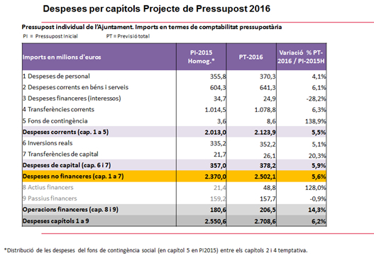 Barcelona presenta un pressupost per al 2016 amb un increment de la despesa social i la inversió