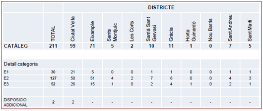El catàleg conté un total de 211 establiments. Respecte l’aprovació inicial del pla, un cop feta una revisió tècnica més acurada i atenent a les al·legacions rebudes s’han suprimit 17 establiments, i a 18 se’ls ha modificat la categoria de protecció.