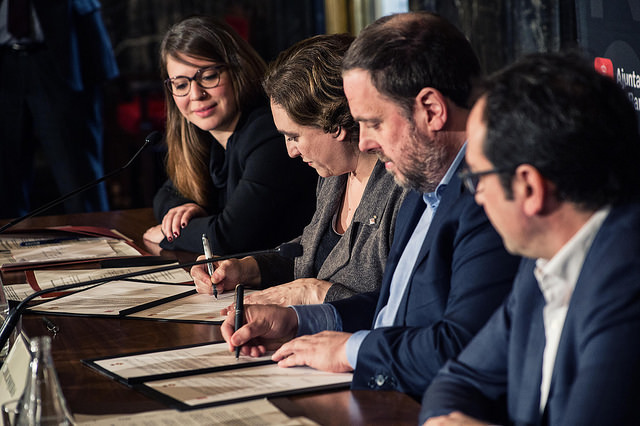 L’alcaldessa de Barcelona, Ada Colau, i el vicepresident de la Generalitat i Conseller d’Economia i Hisenda, Oriol Junqueras, han signat avui el conveni de col·laboració per al finançament de diverses actuacions que es duran a terme a la Línia 10 sud al llarg d’aquest 2017 i que permetran fer arribar aquest transport públic als barris de la Marina a principis del 2018, donant resposta a una històrica reivindicació dels veïns d’aquest àmbit de la ciutat.
