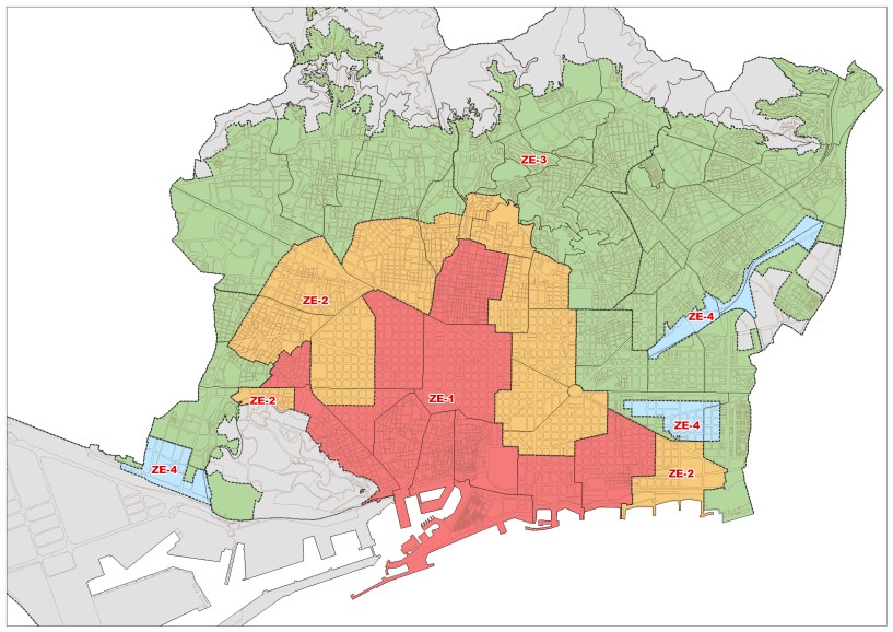 – Zona 4 – Altres àmbits amb regulació específica: El pla proposa la delimitació de la Zona Específica 4 corresponent a les tres grans àrees de transformació de la ciutat. Aquestes són la Marina del Prat Vermell, la Sagrera i el 22@, i presenten característiques molt diverses, tant de posició urbana com d’intensitat edificatòria, els seus usos i les condicions en què s’estan desenvolupant.