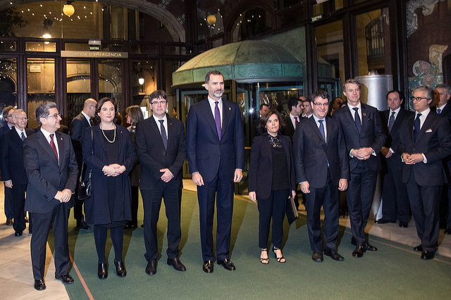 S.M. el rei Felip VI; el president de la Generalitat de Catalunya, Carles Puigdemont; i el director general de GSM Association, Mats Granryd, entre altres autoritats.