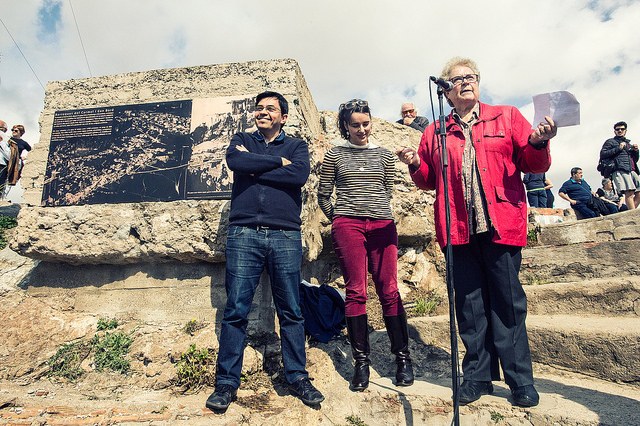Gerardo Pisarello i Mercedes Vidal inauguren la placa commemorativa en homenatge als veïns dels antics barris de barraques del Carmel i de Can Baró