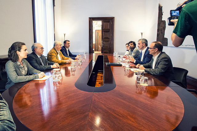 El tinent d’alcaldia d’Empresa, Cultura i Innovació, Jaume Collboni, i el regidor d’Arquitectura, Paisatge i Patrimoni, Daniel Mòdol, s’han reunit aquest dijous amb el Gremi de Restauració de Barcelona per iniciar les converses de cara a consensuar la futura modificació de l’ordenança de terrasses. Per part del Gremi, a la trobada hi han participat el president, Pere Chias, el vicepresident Isidre Gironès i el director general, Roger Pallarols.