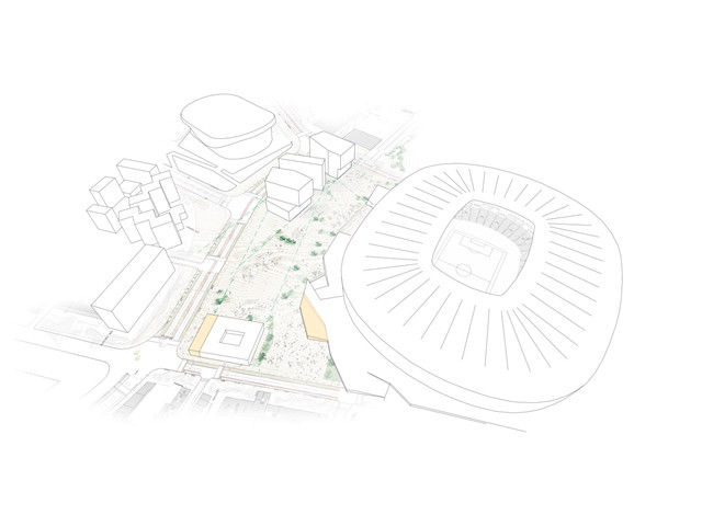 Amb aquest objectiu, tot el sòl lliure d’edificació de propietat privada –33.796 m2–, que dona front al carrer d’Arístides Maillol, entre la Travessera de les Corts i el carrer de Cardenal Roig, serà d’ús públic i s’urbanitzarà adequadament perquè esdevingui un nou àmbit obert a la ciutadania i amb una activitat urbana sostinguda més enllà dels esdeveniments esportius.