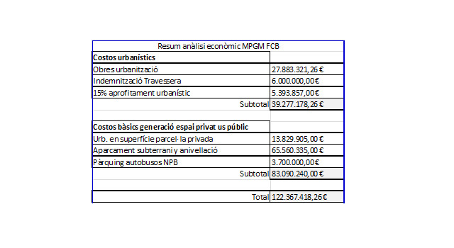 El futur Espai Barça que preveu fer possible l’MPGM inclou la remodelació del Camp Nou, que donarà pas a una edificació moderna, flexible, eficient energèticament i sostenible mediambientalment. D’altra banda, a l’illa que ocupa ara el Miniestadi s’hi construirà, un cop s’enderroqui, un Nou Palau Blaugrana, un pavelló annex per a les activitats esportives de les seccions del club –hoquei, handbol, futbol sala, etc.– i altres instal·lacions pròpies de la pràctica esportiva, com la pista de gel i de la FCB Escola, que mantindran la seva activitat en aquesta nova ubicació.