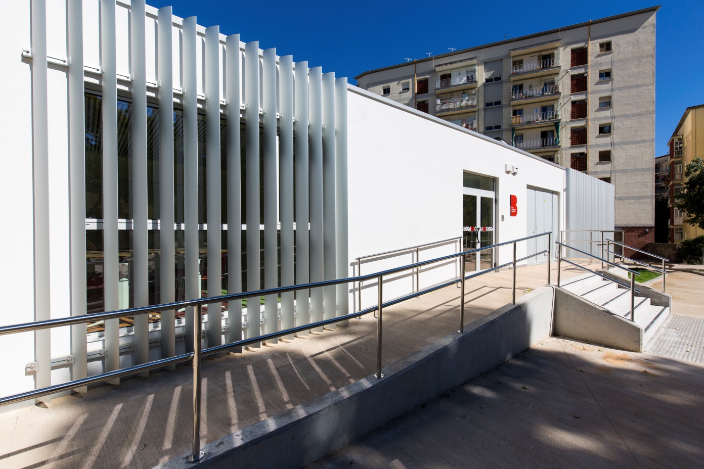Es tracta d’una construcció innovadora amb planta baixa i planta pis que aprofita el desnivell del terreny per tal de poder facilitar l’accés de les persones amb mobilitat reduïda. Un 85% de la construcció es va completar en taller, fet que va facilitar limitar molt el temps d’actuació sobre el terreny i la generació de residus. Tant el model de treball com el sistema constructiu han estat possibles pel desenvolupament de noves eines informàtiques de disseny i de transmissió d‘informació.
