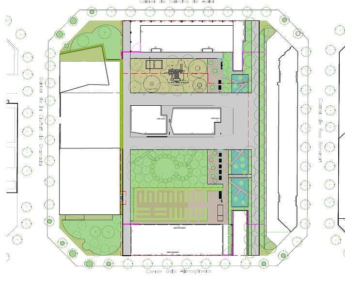 Es tracta d’un nou espai lliure que guanya el barri en un interior d’illa, i que incorpora un estany, zona verda, jocs infantils i pistes de petanca