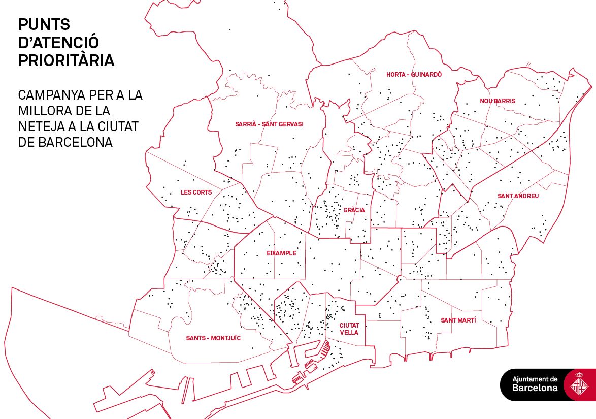 • Per fer-ne seguiment es determinen 863 punts a la ciutat de major atenció vinculats a problemàtiques arrelades que necessiten de més temps d’actuació i d’altres agents del territori (alimentadors d’animals, botellón, abocadors incontrolats,…)