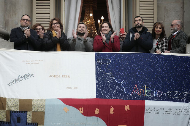 Ada Colau assisteix a l’acte de desplegament del Tapís Memorial de la Sida