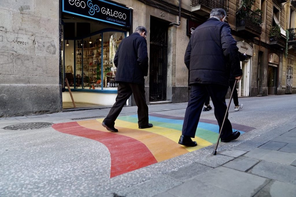 Gràcia pinta amb els colors de l’Arc de Sant Martí un pas de vianants en compromís per la lluita per l’alliberament LGTBI