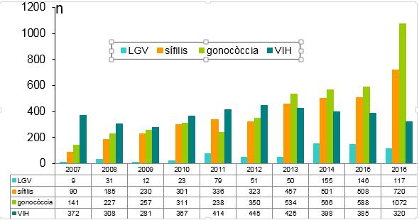 Sífilis i gonocòccia concentren els increments més grans dels últims anys, mentre que el linfogranuloma es manté estable i baixa lleugerament la incidència del VIH