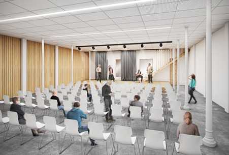 El projecte que s’executarà en els propers nou mesos, preveu transformar els 1.350 metres quadrats disponibles en un centre d’activitat cultural i social, tal com es va pactar amb les entitats del barri de la Sagrada Família. Per aquest motiu les obres desenvoluparan a l’interior del local els següents espais, tots ells situats a la planta baixa, és a dir, amb accés directe des del carrer. Aquesta planta quedarà organitzada en tres franges: