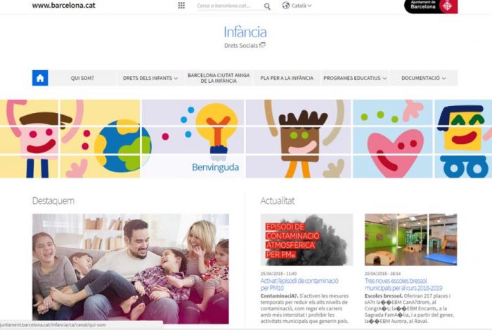 L’Ajuntament de Barcelona ha renovat el web d’infància per tal que es pugui cercar qualsevol equipament públic de la ciutat adreçat als nens i nenes i trobar la informació sobre les activitats que realitzen cada un d’ells. El nou portal neix amb la voluntat de facilitar la navegació i de recollir informació que pugui ser d’interès per a les famílies amb nens: tant pel que fa a atenció i protecció social, participació dels infants, activitats de lleure, centres educatius i instal·lacions esportives.