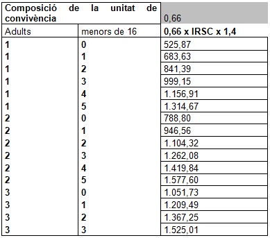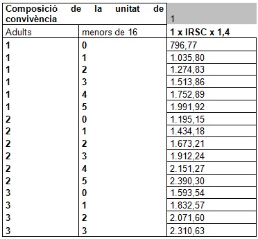 Els llindars d’ingressos mensuals per a l’accés als serveis gratuïts (entesos per 14 pagues anuals), són els següents: