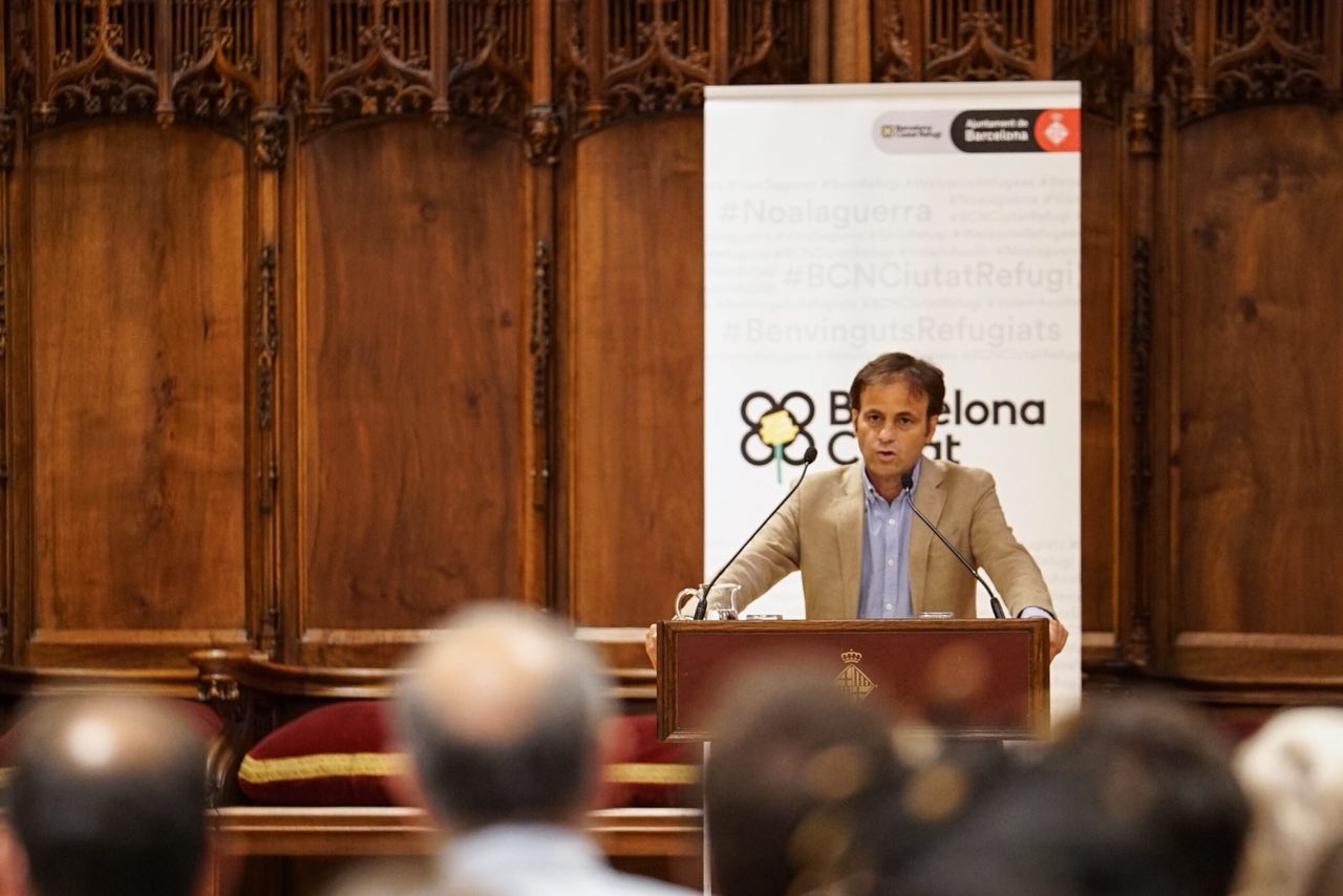 Unes dues-centes persones han participat a l’acte del Dia Mundial de les Persones Refugiades que s’ha fet avui al saló de Cent amb voluntaris i voluntàries, entitats i persones que acompanyen i atenen a persones refugiades a la ciutat.