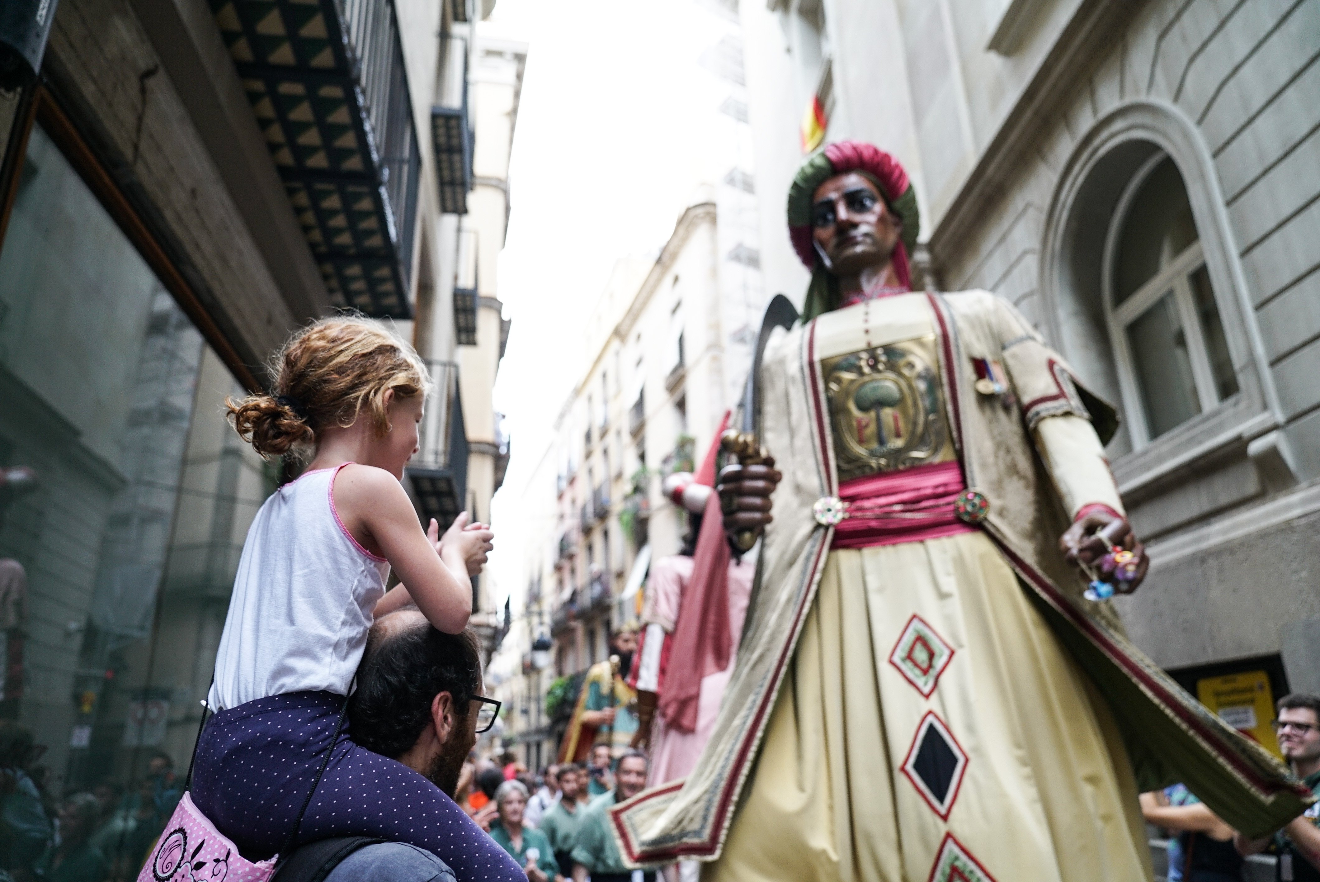 Aquest migdia, a les 12:00 hores, a la Plaça de la Mercè, s’ha iniciat el Seguici de la Mercè, que ha recorregut els carrers Ample, Regomir, i Ciutat, fins a arribar a l’Ajuntament de Barcelona.