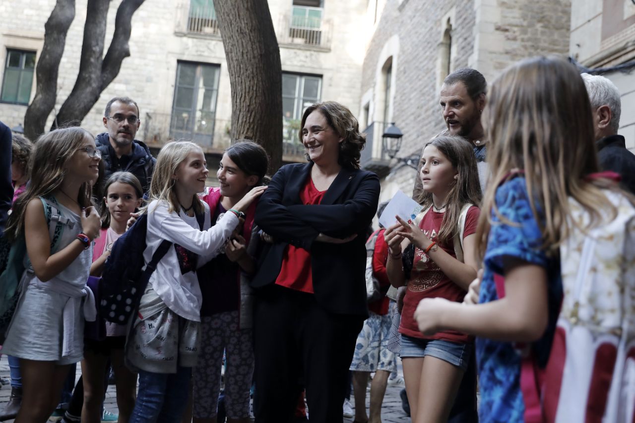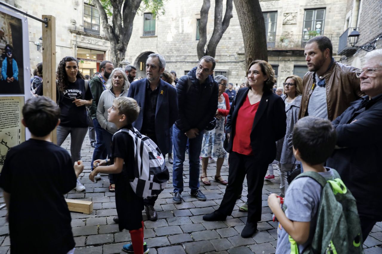 Ada Colau assisteix a l’acte de col·locació d’un faristol explicatiu del bombardeig de la plaça Sant Felip Neri