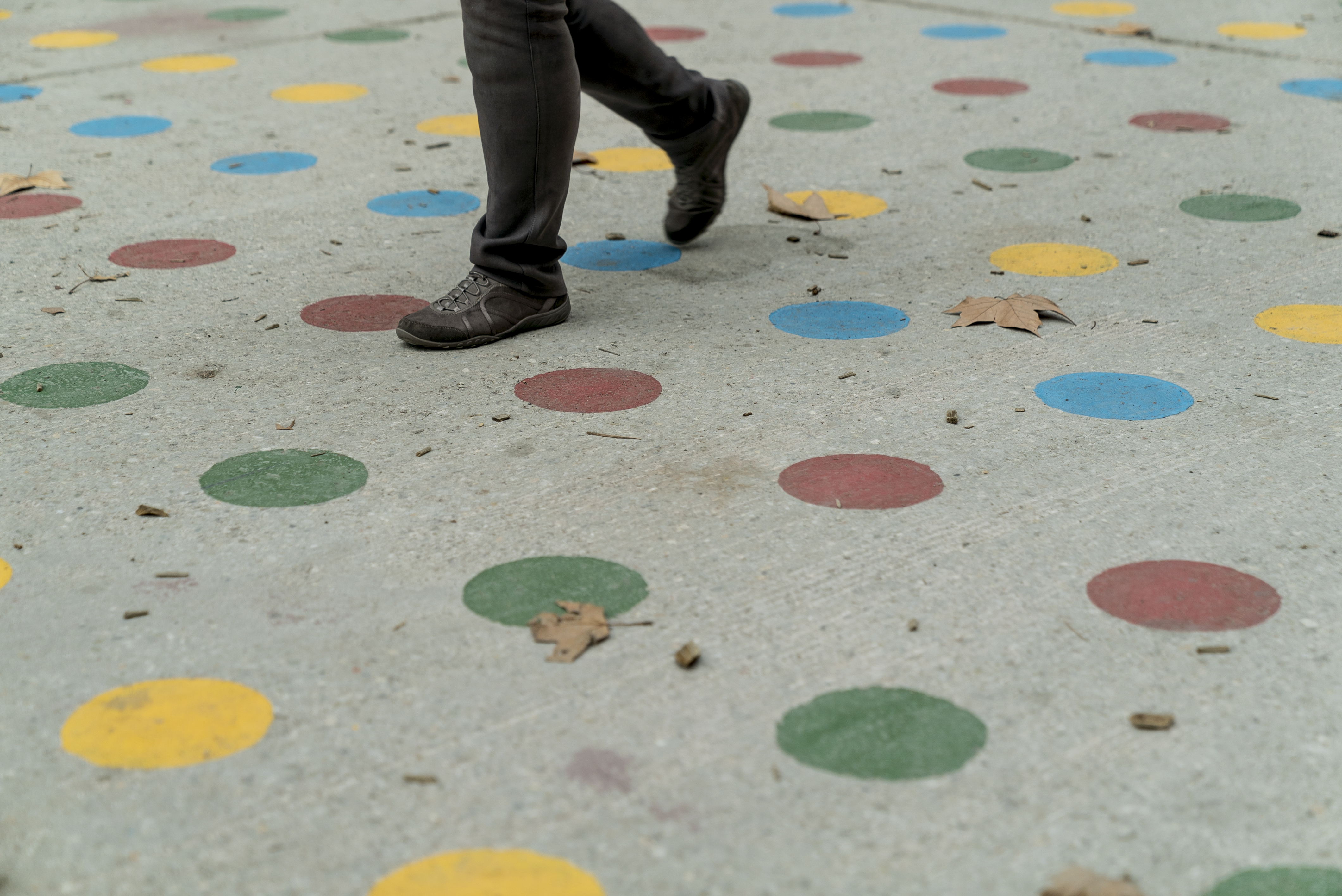 Durant el Nadal s’ha pogut passejar per l’àmbit, i ara ja es pot gaudir de la intervenció artística amb jocs infantils pintats al paviment i dels nous bancs, cadires, arbres i enllumenat