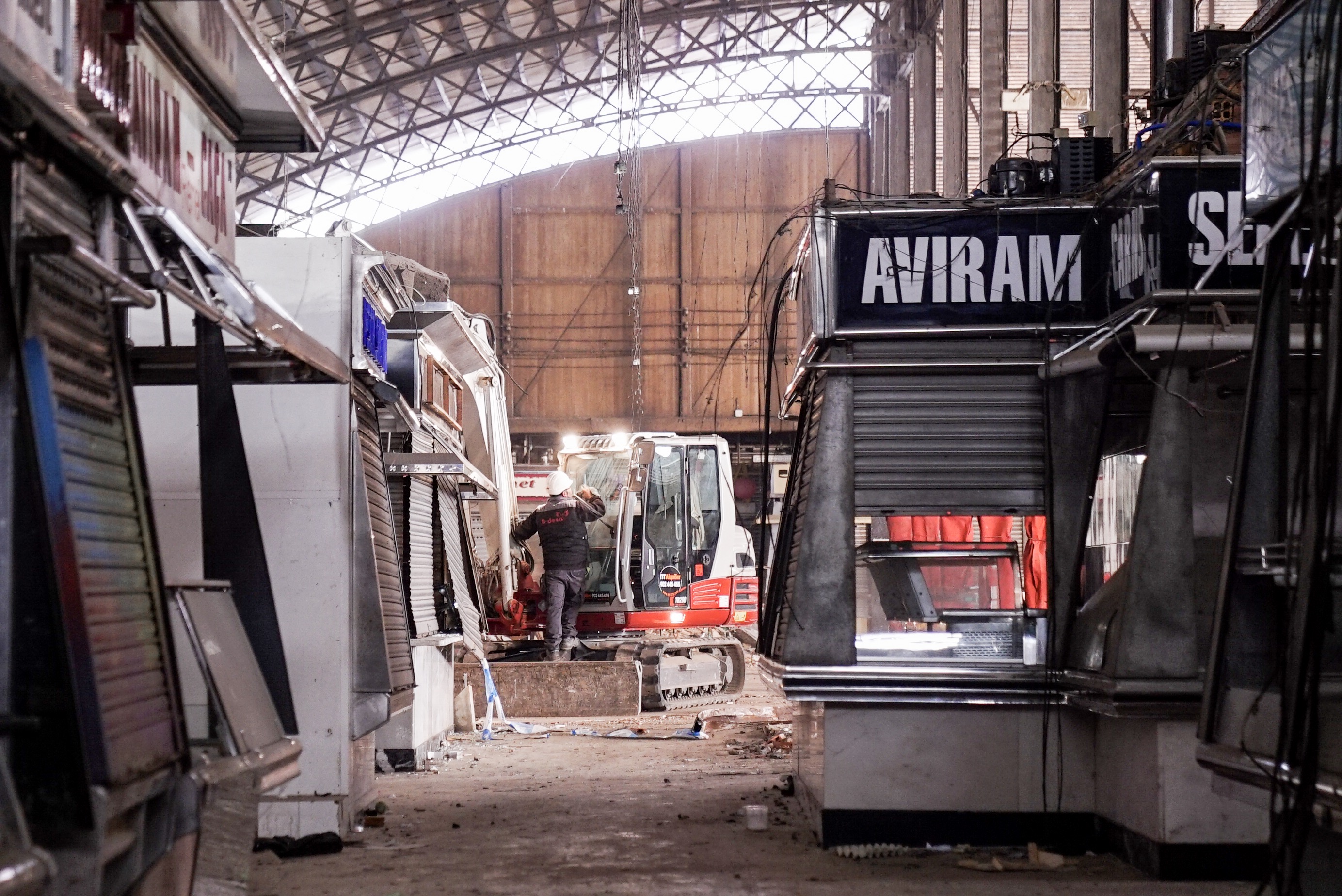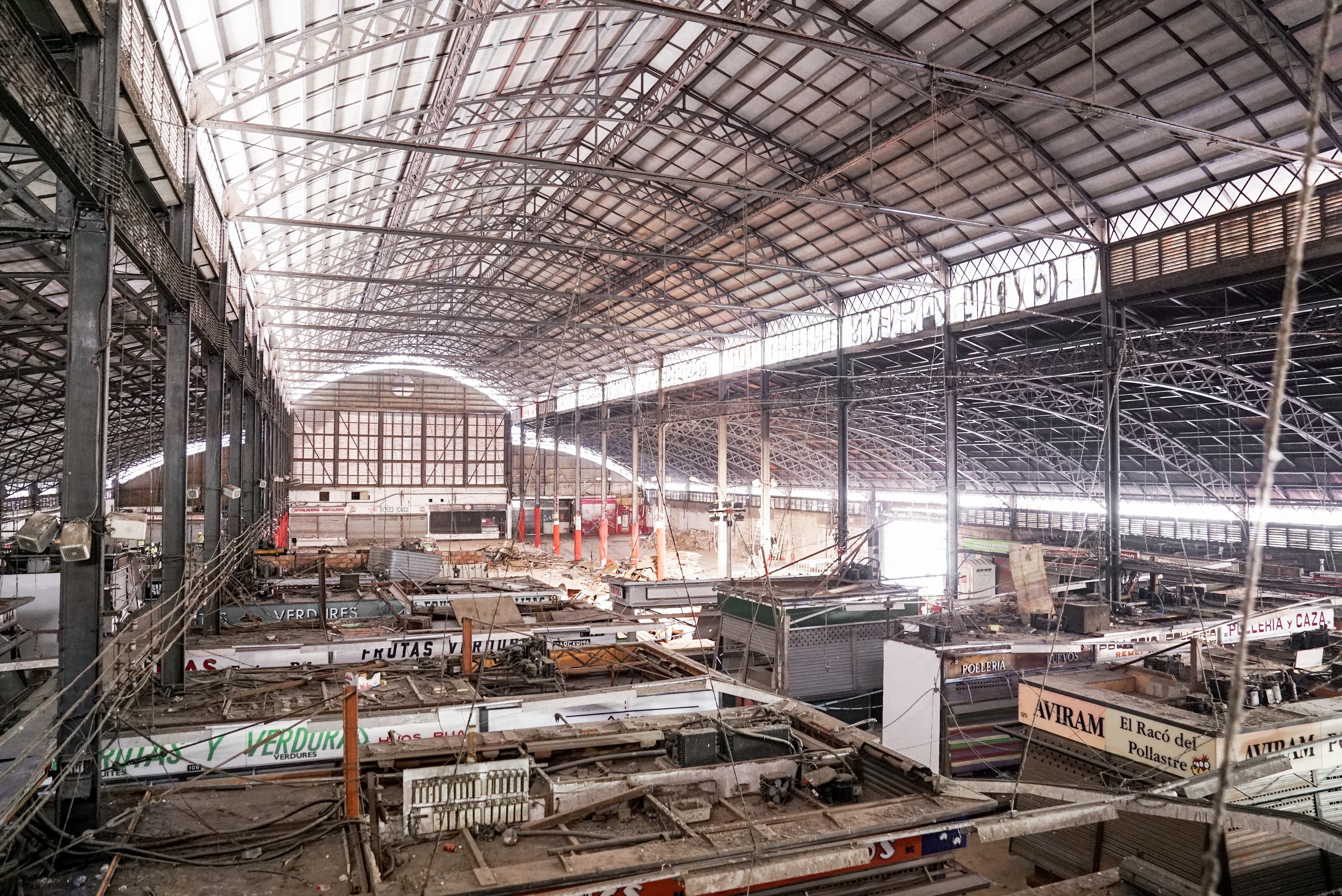 Les obres es troben actualment en la fase d’enderrocament de les parades i de buidatge de tot l’interior del mercat