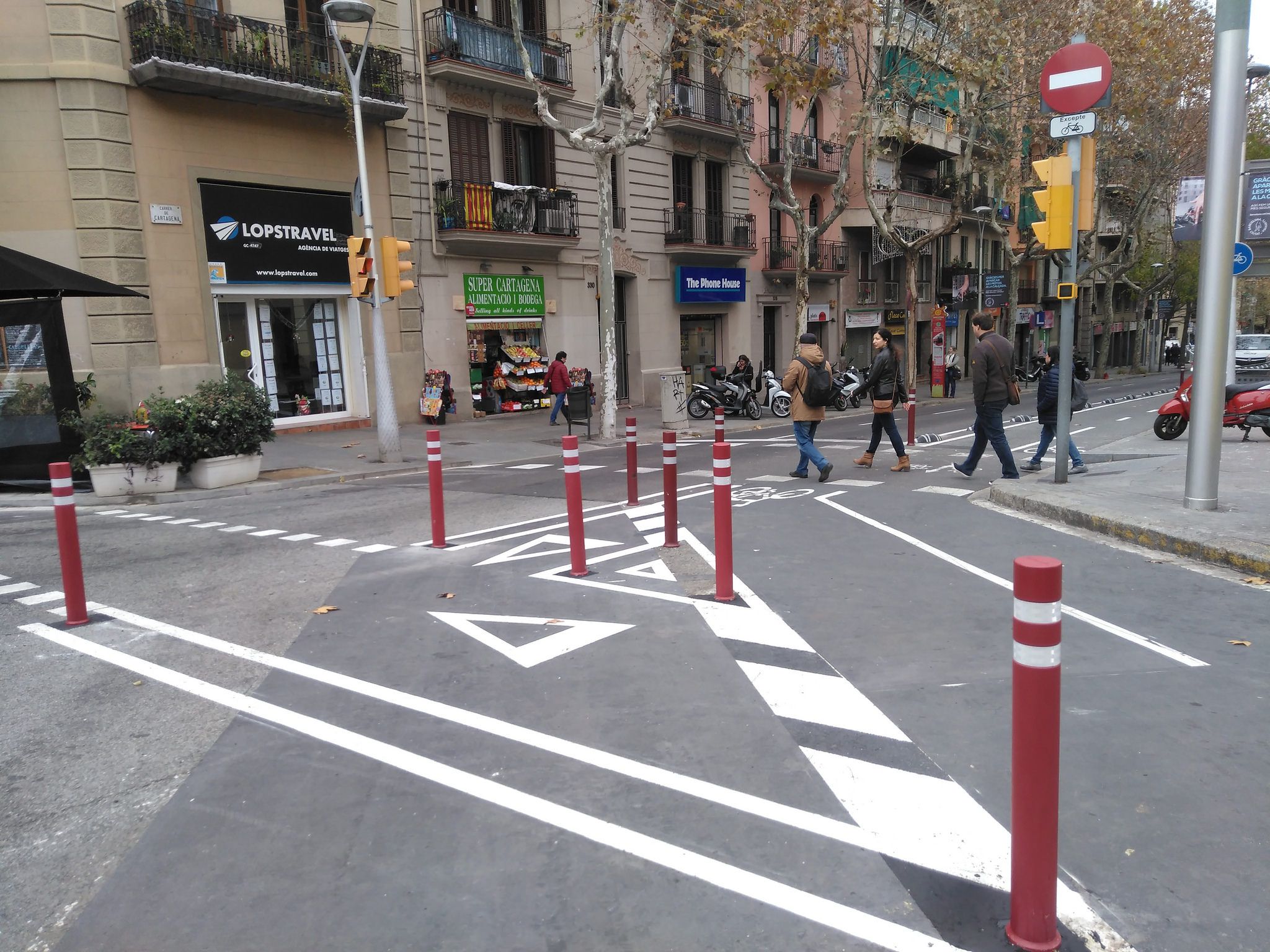 - Gran Via de les Corts Catalanes, plaça Espanya – plaça d’Ildefons Cerdà. És un dels eixos ciclistes amb més ús amb carril bici en vorera que passarà a ocupar la calçada lateral.