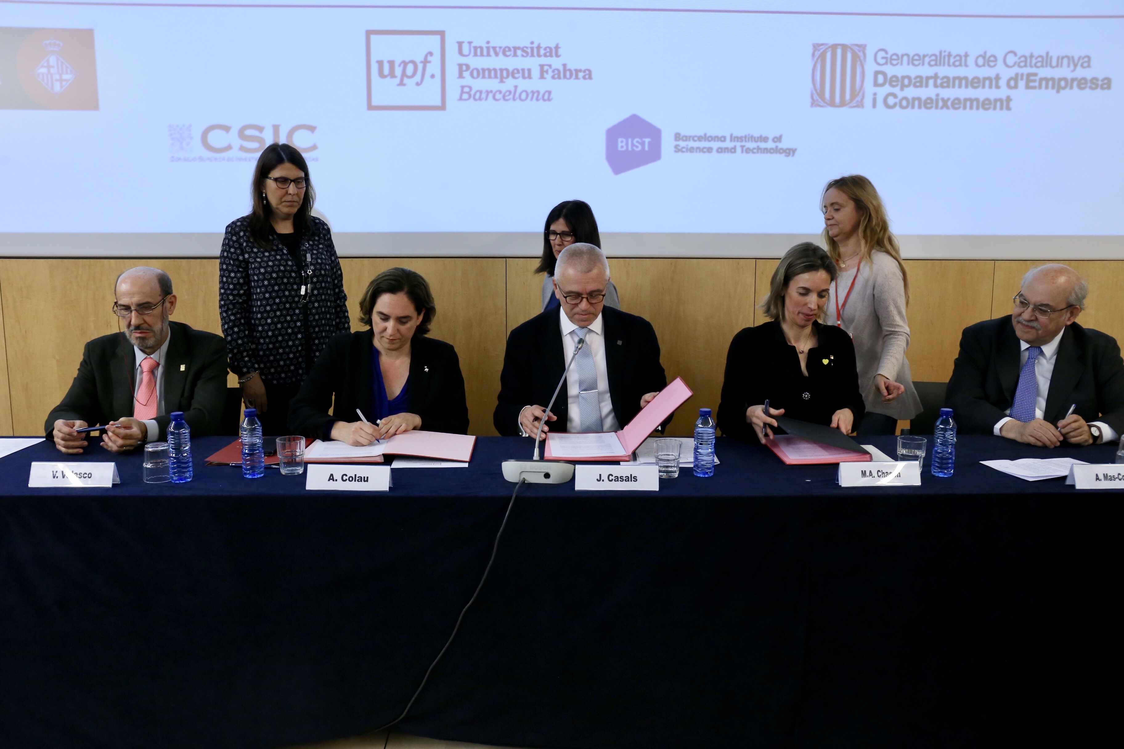 Els primers socis del projecte científic, a banda de la UPF, són el Consejo Superior de Investigaciones Científicas (CSIC), a través de l’Institut de Biologia Evolutiva (IBE CSIC-UPF), i la Fundació Barcelona Institute of Science and Technology (BIST) que integra set dels centres de recerca més destacats de Catalunya (CRG-IBEC-ICIQ-ICFO-ICN2-IFAE-IRB). Durant l’acte, Ada Colau, alcaldessa de Barcelona; Jaume Casals, rector de la UPF; Andreu Mas-Colell, president del BIST, i Víctor Velasco, vicepresident d’Organització i Relacions Institucionals del CSIC, han signat un segon protocol general d’actuació comuna.