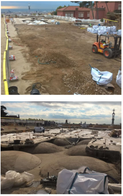 Durant l’execució de les obres, concretament després del buidat de les diferents capes superficials, es va observar esquerdes a les cúpules que formen l’estructura d’aquest plaça i també en la seva cara inferior.