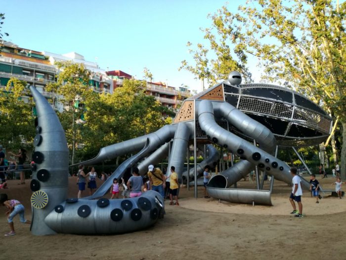 Ahir va entrar en funcionament el nou espai de jocs infantils singulars al barri de La Sagrera, la gran estructura en forma de pop amb sis grans tobogans dissenyada a partir de la participació dels infants de les escoles de l’entorn del parc.