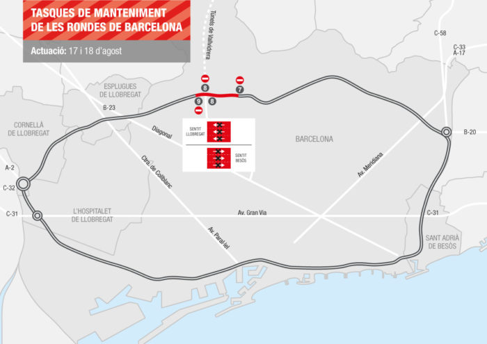 En sentit Besòs hi haurà afectació en el tram comprès entre la sortida 9 a Sarrià, i la incorporació 8 a la Via Augusta, de la B-20