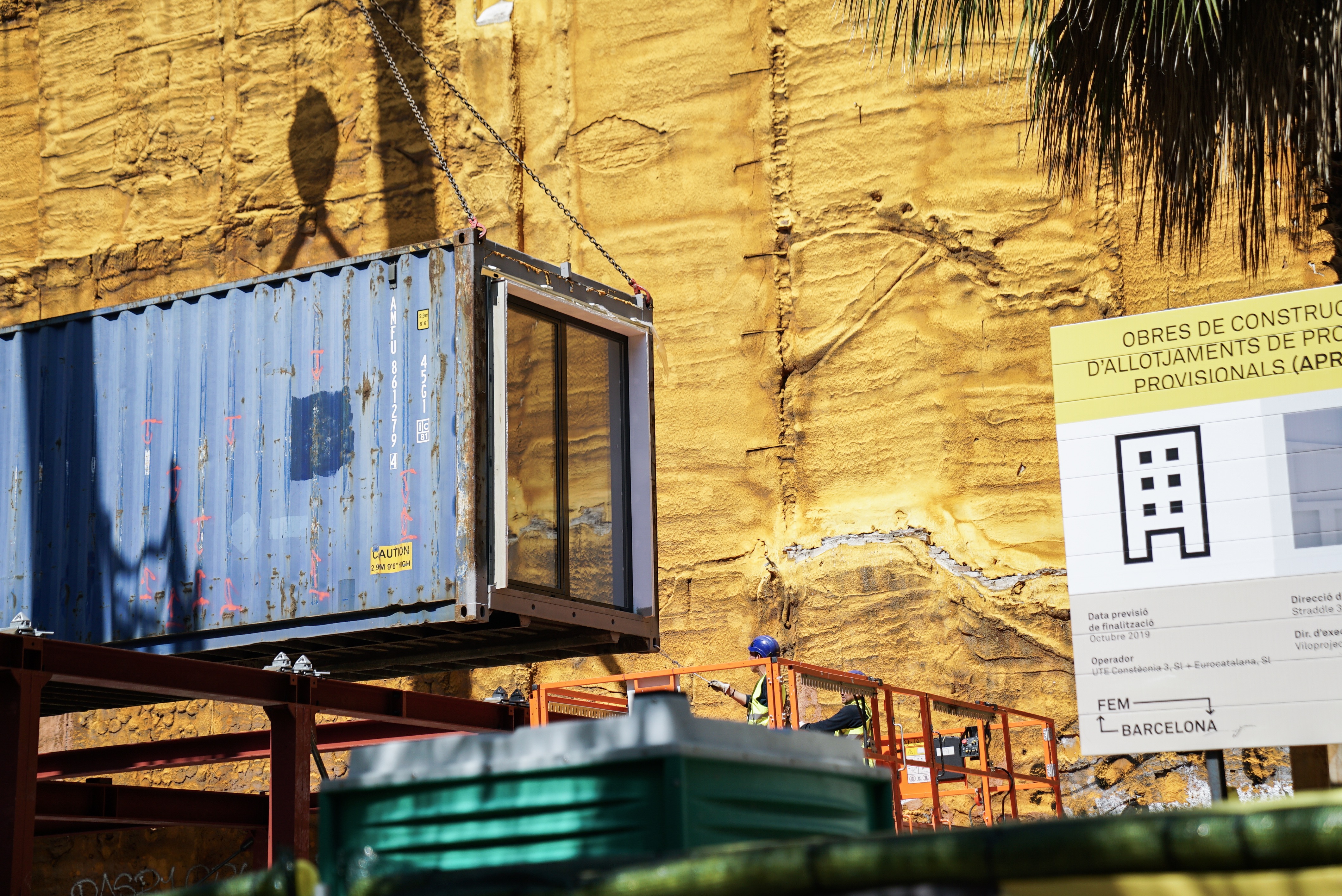 Comencen els treballs d’instal·lació del primer edifici del programa d’Allotjaments de PROximitat Provisionals (APROP), situat al barri Gòtic