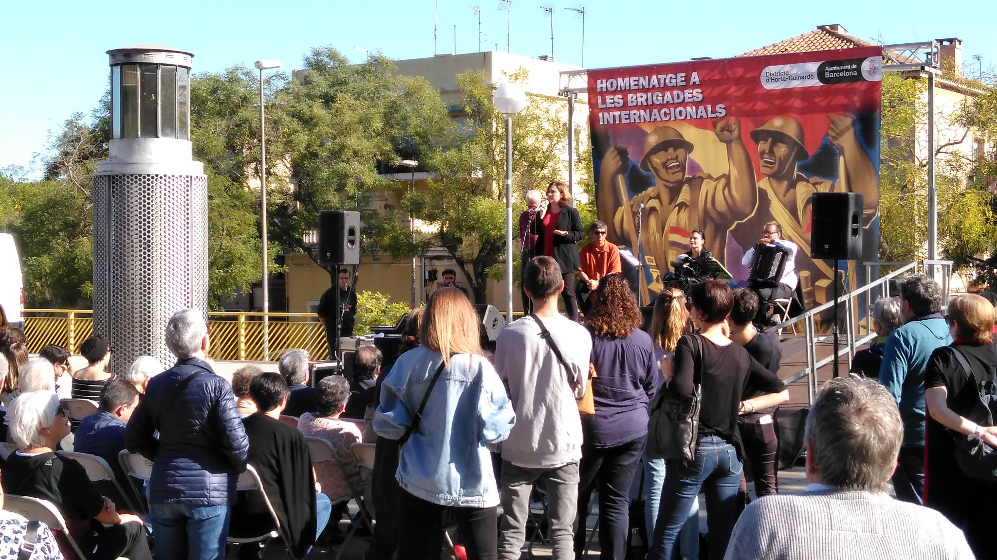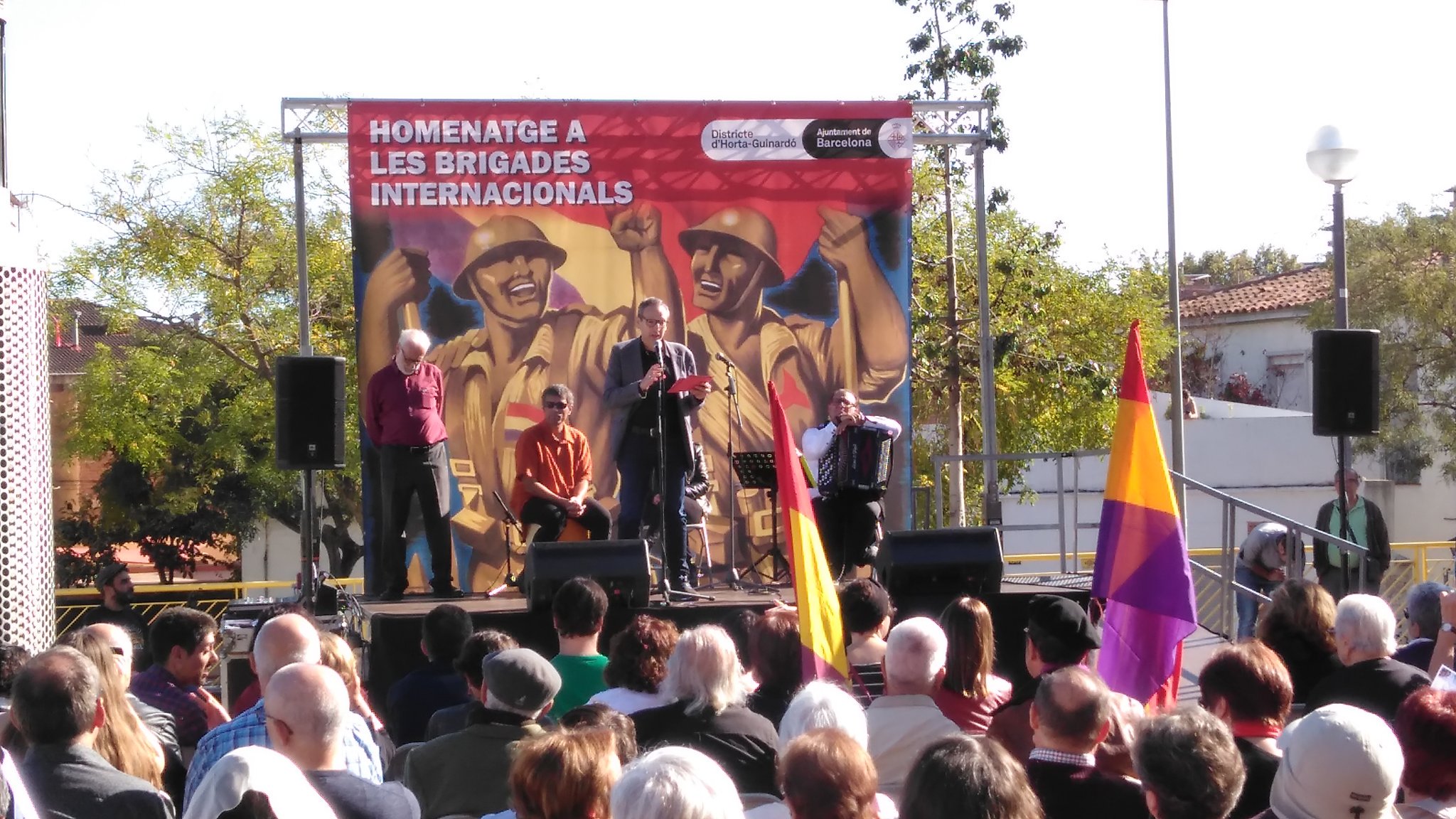 A l’acte al que hi han assistit la Regidora del Districte, Rosa Alarcón, i el Regidor de Memòria Democràtica, Jordi Rabassa, ha estat conduït i presentat per Eduard Amouroux, secretari de l’Amical de les Brigades Internacionals, també hi han intervingut Isabel Ribas, que ha llegit les paraules amb les que La Pasionaria va acomiadar les Brigades; l’historiador nordcatalà i especialista en l’exili republicà, Grégory Tuban; i el director del Memorial Democràtic, Jordi Font. El Quartet Brossa ha posat música entre els parlaments.