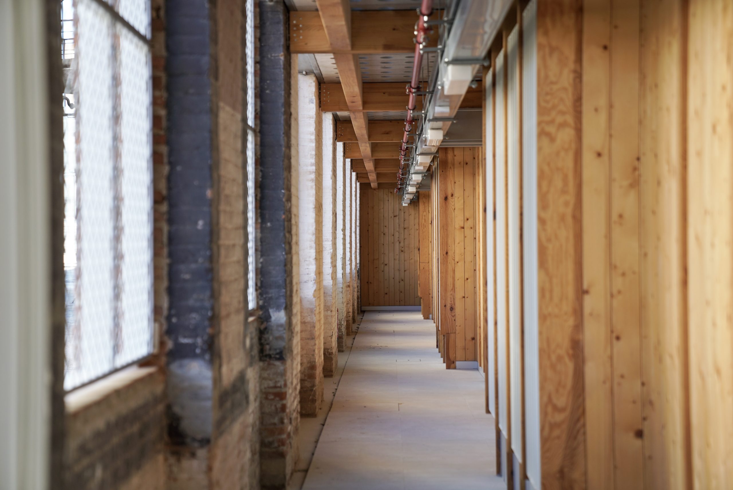 Es tracta d’un bloc construït amb estructura de fusta a l’interior d’una de les antigues naus industrials del recinte fabril