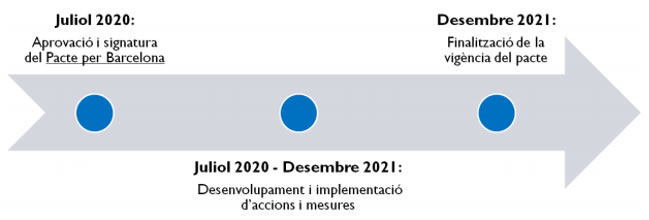 La mesa del Pacte per Barcelona es marca com a objectiu formalitzar un acord definitiu al juliol d‘enguany, amb mesures i actuacions que es desenvolupin en un horitzó de 18 mesos, fins al desembre de 2021.