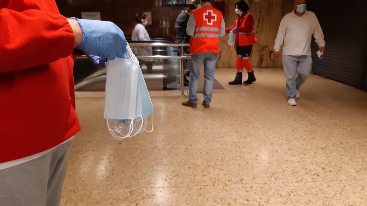 Des d’aquest dilluns l’Ajuntament de Barcelona està coordinant, juntament amb la Creu Roja, el repartiment de 225.000 mascaretes enviades pel Govern central per incrementar la protecció als transports públics. La distribució la realitzen personal de la Creu Roja i voluntaris del consistori