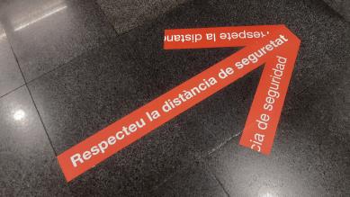 Dins de les actuacions per reforçar el respecte de la normativa de distanciament i prevenir aglomeracions, TMB està implantant una senyalització horitzontal en els enllaços de metro i estacions de més afluència, per ordenar el flux de passatgers. Les fletxes a terra inviten a caminar per la banda dreta i respectar la distància de seguretat en tot moment. Actualment ja estan senyalitzats els enllaços de Diagonal, Espanya, Urquinaona, la Sagrera, Sagrada Família i Verdaguer. Cartells amb la indicació de respectar la distància amb altres persones estan col·locats a les portes lliscants de les línies de peatge i les zona de venda de bitllets. A les portes dels ascensors es recorda a més que són d’ús preferent per a persones amb mobilitat reduïda.