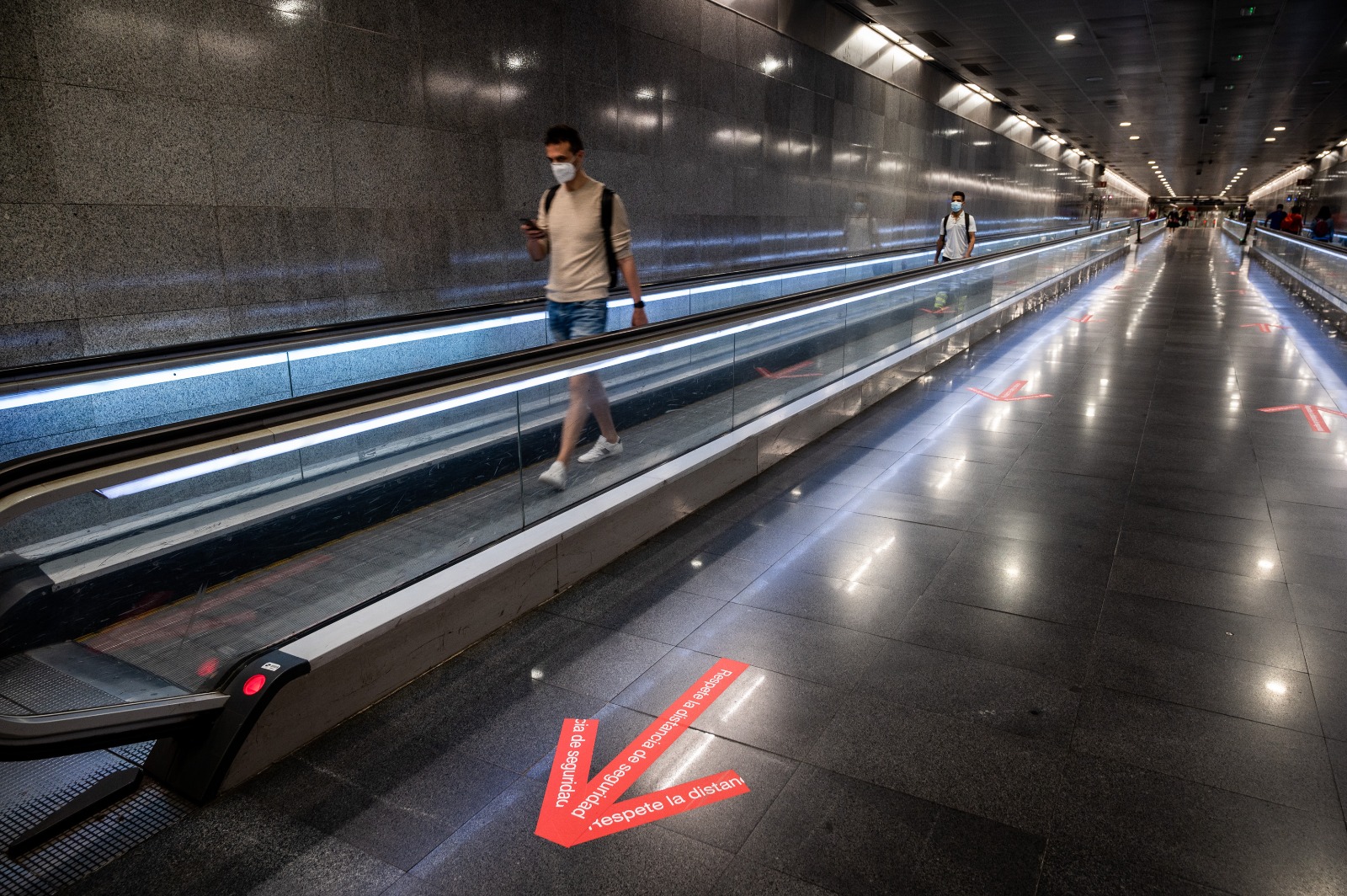 Dins de les actuacions per reforçar el respecte de la normativa de distanciament i prevenir aglomeracions, TMB està implantant una senyalització horitzontal en els enllaços de metro i estacions de més afluència, per ordenar el flux de passatgers. Les fletxes a terra inviten a caminar per la banda dreta i respectar la distància de seguretat en tot moment. Actualment ja estan senyalitzats els enllaços de Diagonal, Espanya, Urquinaona, la Sagrera, Sagrada Família i Verdaguer. Cartells amb la indicació de respectar la distància amb altres persones estan col·locats a les portes lliscants de les línies de peatge i les zona de venda de bitllets. A les portes dels ascensors es recorda a més que són d’ús preferent per a persones amb mobilitat reduïda.