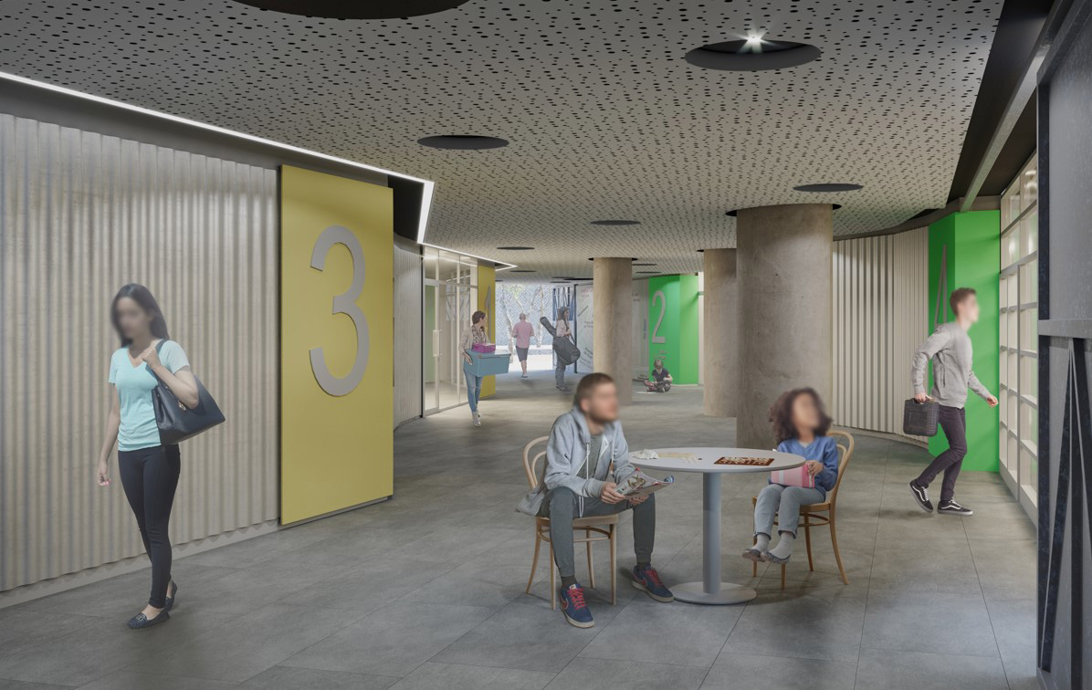 Es dignificarà l’espai intervenint en el paviment, les parets, les columnes, el sostre i l’enllumenat de tot el recinte, i es donarà visibilitat a les entitats que ocupen els locals d’aquest espai