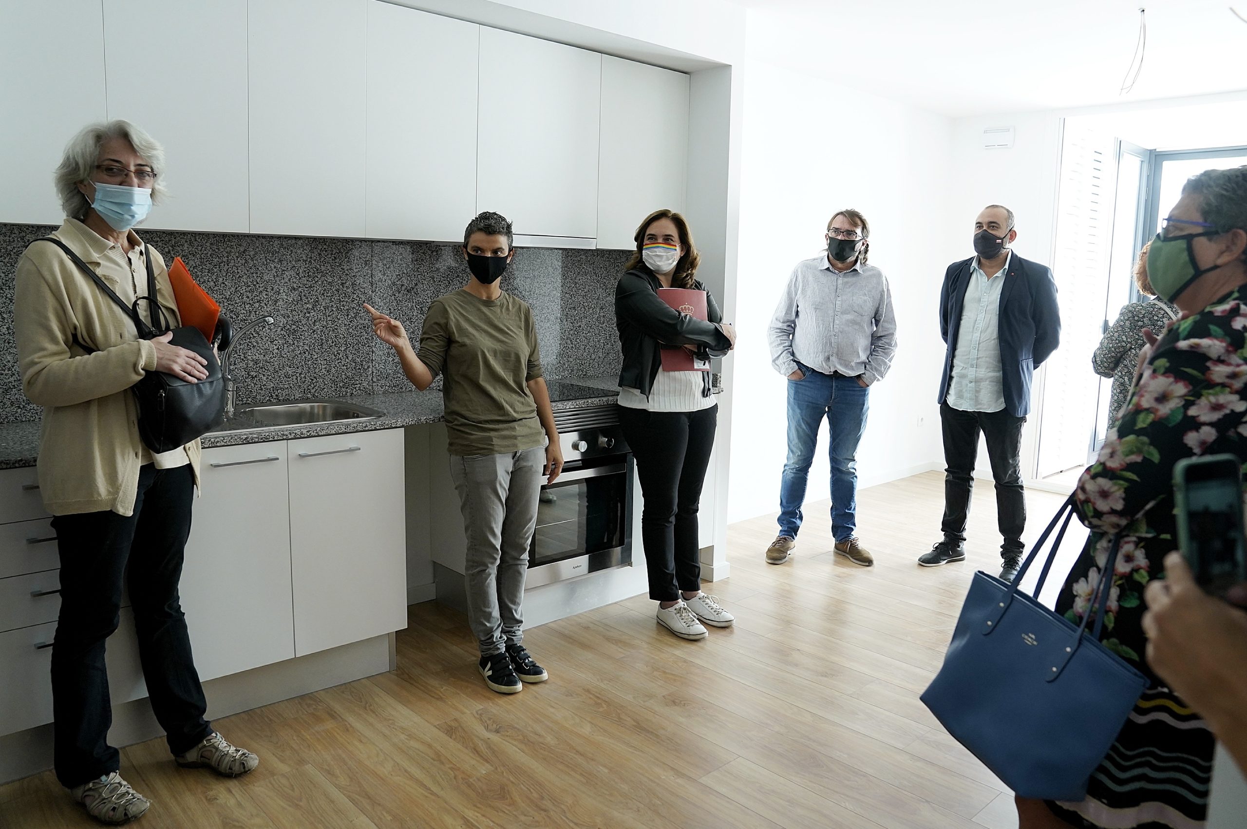 Ada Colau acompanyada d’una representació de les entitats, presenta el Decàleg de Barcelona pel Dret a l’Habitatge en una nova promoció d’habitatge públic de lloguer social que tot just ha acabat les obres a l’Eixample