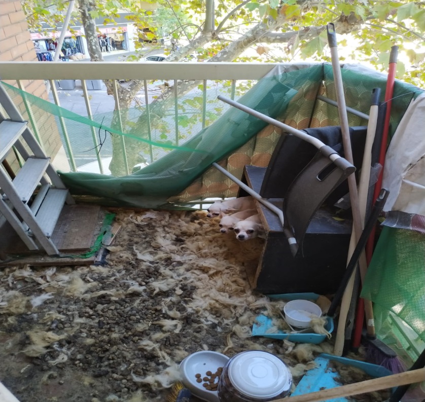 Els membres del cos de policia barceloní també van localitzar en els dos balcons de l’habitatge cinc gossos de la raça chihuahua que vivien entre excrements i brutícia i mostres físiques que no sortien al carrer des de feia molt de temps.