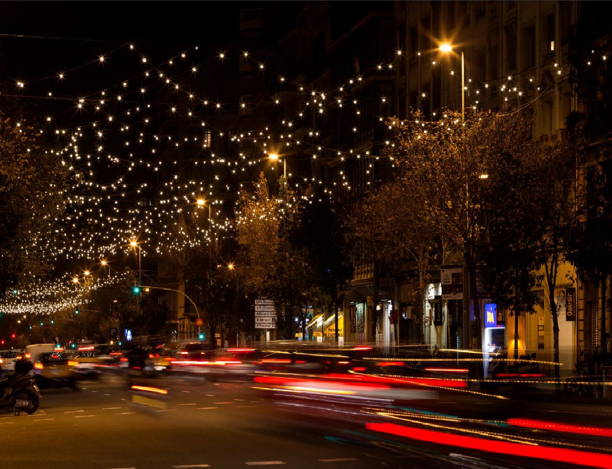 La ciutat lluirà amb més de 100 kilòmetres d’il·luminació nadalenca, en els que s’afegeixen noves vies urbanes i els 39 edificis de mercats de la ciutat, com a centres neuràlgics del comerç dels seus barris. Plaça Catalunya, Plaça Universitat, Balmes, Pelai, Passeig de la Verneda, o Creu Coberta són alguns dels principals carrers que tornaran a tenir arcs amb il·luminació nadalenca