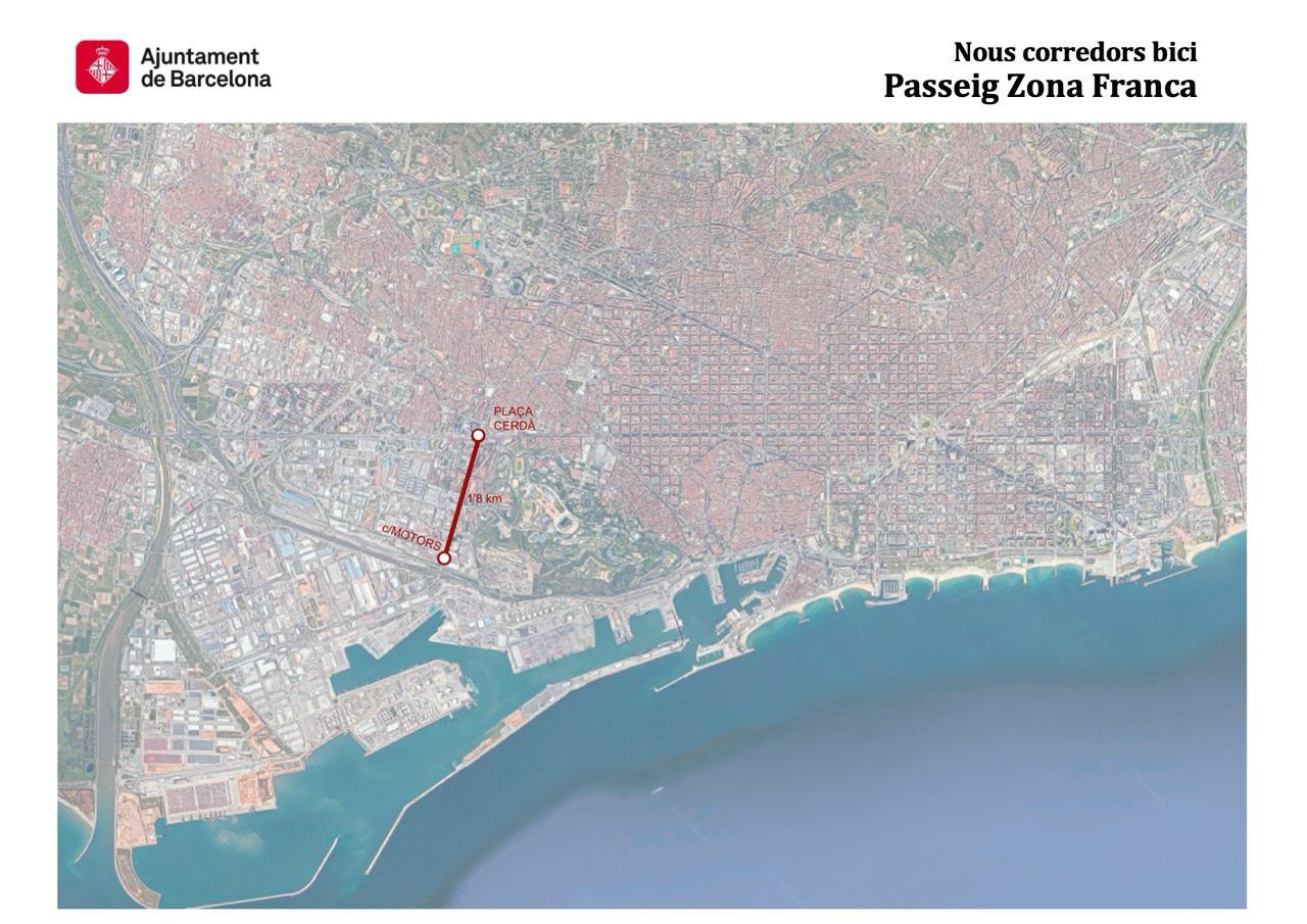A partir de dilluns es dona un nou impuls a l’ampliació de la xarxa ciclista de la ciutat amb l’inici de les obres per implantar un nou carril bici al passeig de la Zona Franca, entre la plaça Cerdà i el carrer dels Motors. En aquest passeig s’habilitaran dos nous trams de carrils bici unidireccionals a ambdós costats de la via, sumant un total de 3,6 nous quilòmetres d’infraestructura ciclista (1,8 per sentit), en un moment en el qual els desplaçaments ciclistes a la ciutat s’han incrementat un 12%, respecte el mes de febrer. El carril bici del passeig de la Zona Franca és una connexió de rellevant importància tant des del punt de vista d’escala metropolitana com d’escala local i permetrà connectar els carrils bici actuals del polígon de la Zona Franca amb la resta de la xarxa ciclista de la ciutat. El nou carril enllaçarà amb els carrils bici existents de la banda muntanya de la Gran Via i també connectarà amb el carril bici del carrer Mineria. A l’extrem sud connectarà amb els carrils bici existents al carrer Motors i al carrer A.