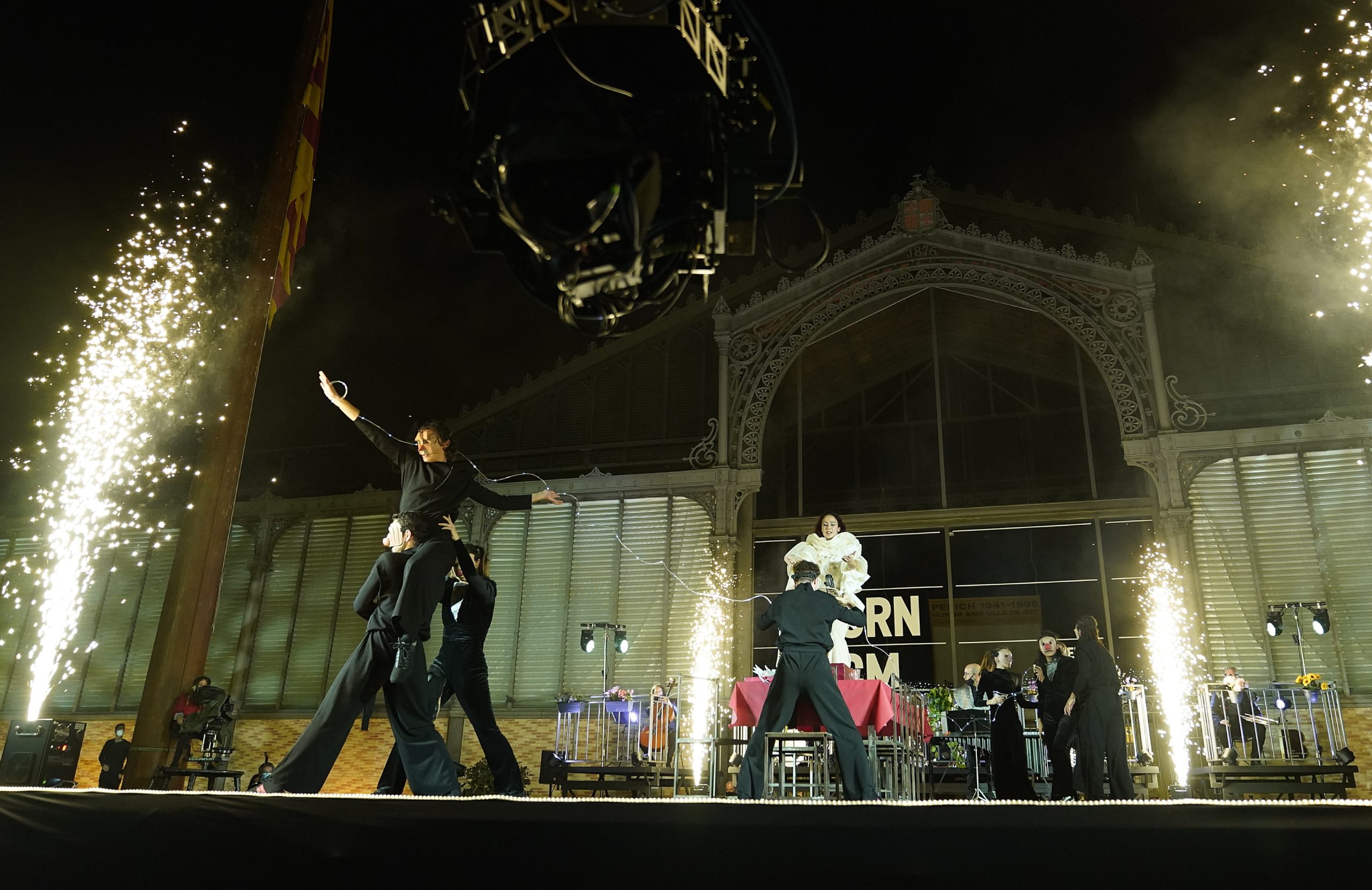 L’espectacle “Covinal”, de la companyia Sol Picó, ha donat pas a l’Encesa, amb un espectacle centrat en les trobades familiars de les festes nadalenques que ha tingut com escenari la plaça Comercial al barri del Born