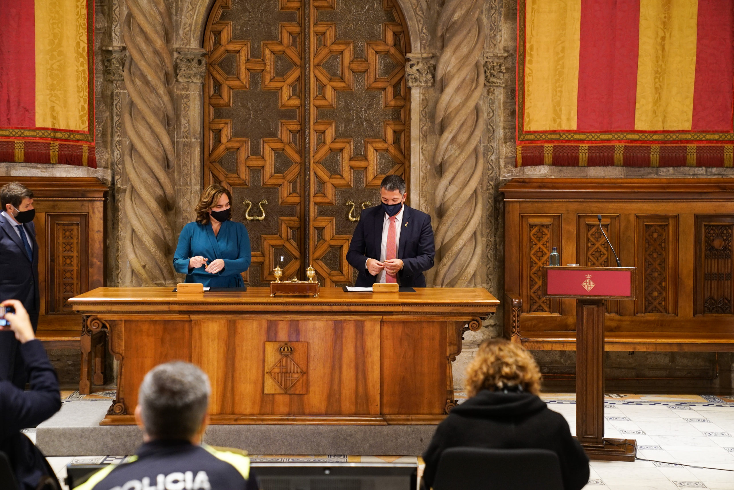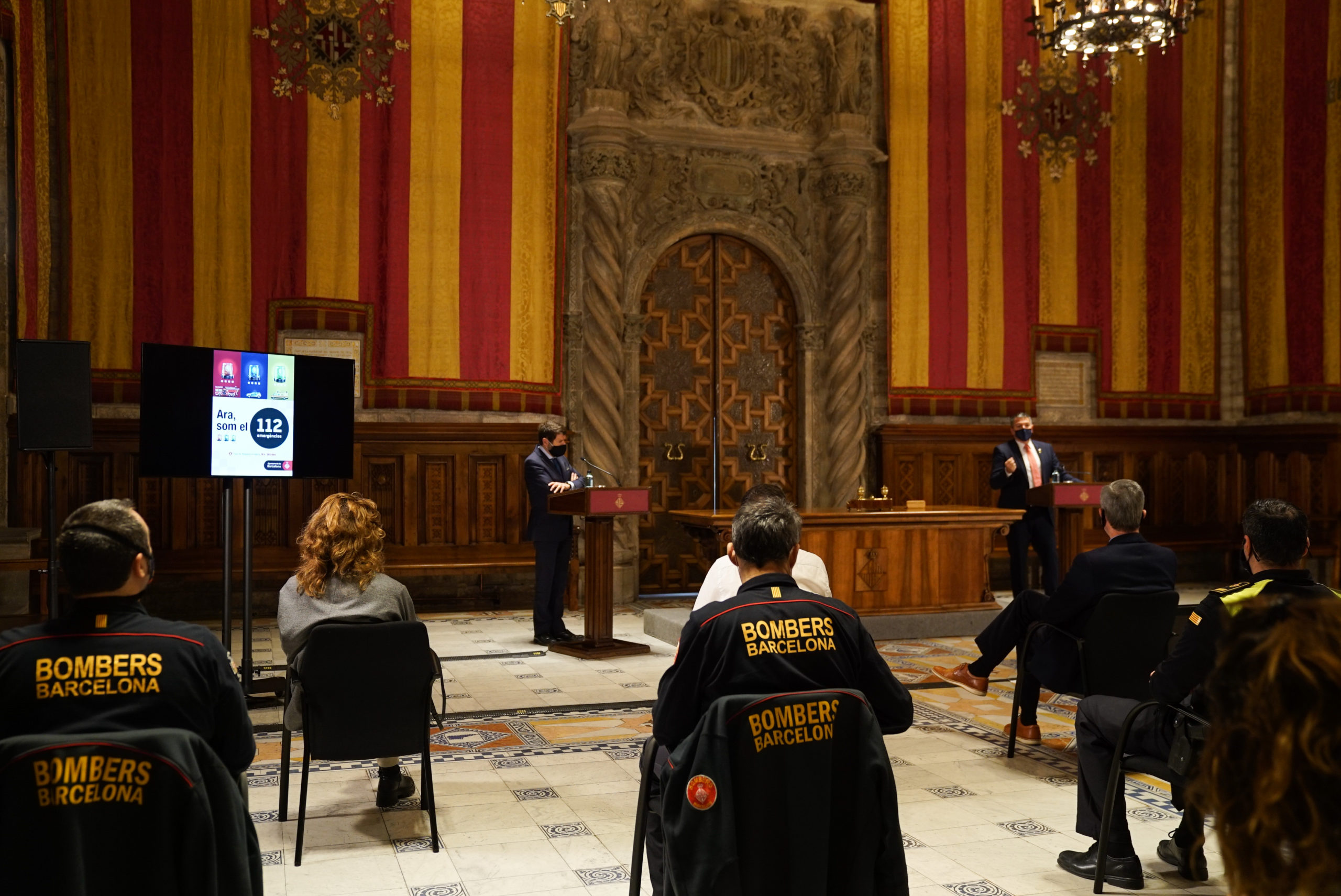 L’alcaldessa de Barcelona, Ada Colau, i el conseller d’Interior de la Generalitat de Catalunya, Miquel Sàmper, han signat aquest matí el conveni el de col·laboració per dur a terme les tasques d’integració tecnològica dels serveis d’emergència de l’Ajuntament en els sistemes del centre d’atenció i gestió de trucades d’urgència 112 Catalunya. Amb aquest acord Barcelona serà la ciutat primera en adherir-se al 112.