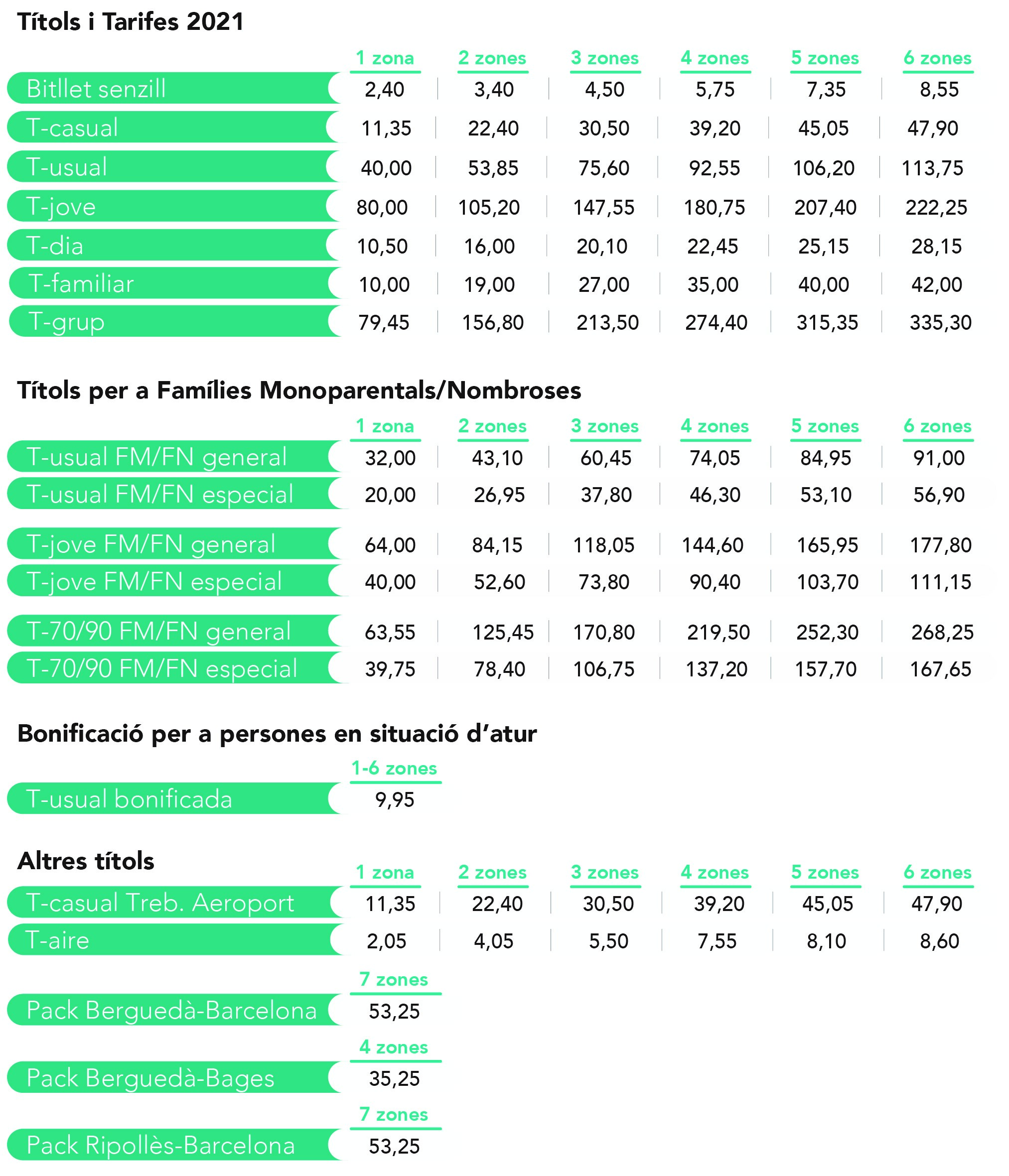 El manteniment de les tarifes permetrà ampliar la caducitat dels títols adquirits durant el 2020, que no caducaran fins el 31 de desembre del 2021. En el cas de la T-verda, la T-16 i la T-compensació covid, mantindran la data de caducitat pròpia de cada títol.