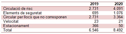 Durant l’any passat la Guàrdia Urbana va dur a terme accions de control en relació a la circulació general principalment dels patinets elèctrics per la ciutat. Es van posar 8.492 denúncies a usuaris particulars de vehicles de mobilitat personal que circulaven incomplint la normativa municipal vigent en aquells moments. La xifra suposa un increment d’un 29,7% respecte l’any anterior.