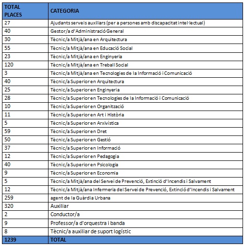 De les 1.239 places que es convocaran aquest any, al setembre es va aprovar la convocatòria de 27 places d’ajudants de serveis auxiliars destinades a persones amb discapacitat intel·lectual, aquest dijous 18 de febrer s’han aprovat 872 places més i les restants 339 s’aprovaran al mes de març. Amb l’oferta d’ocupació pública convocada aquest any, el consistori haurà convocat 2.279 places en els darrers sis anys.