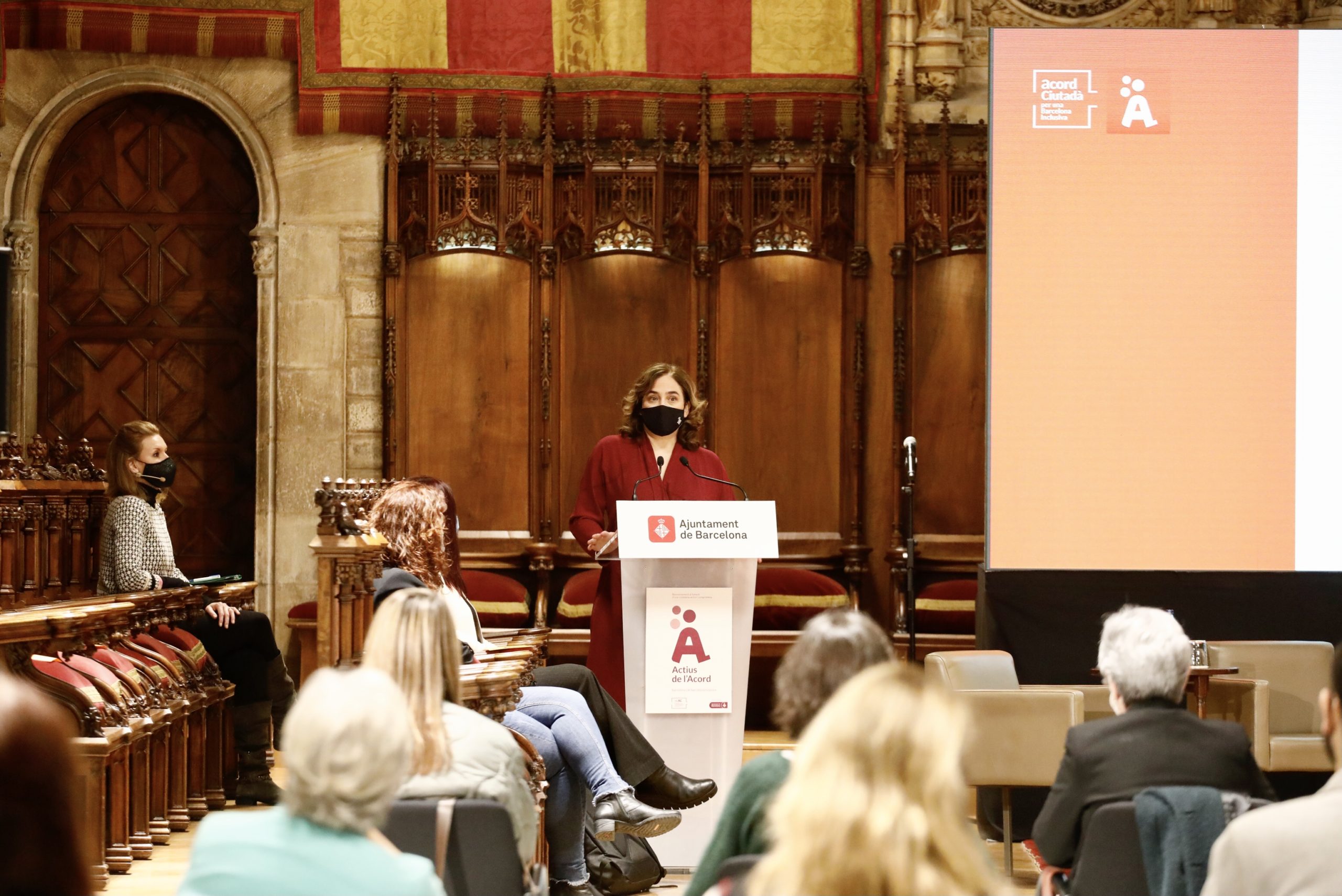 Ada Colau ha donat la benvinguda a la celebració de l’Àgora Ciutadana 2021 agraint la feina clau de les entitats socials i de les xarxes veïnals per fer front les conseqüències econòmiques de la Covid-19